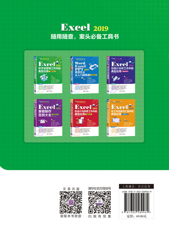 (5)为方便读者掌握更多的职场办公技能,本书配备了一个高效办公技能资源包:包括1086节高效办公技巧微课,115节实操案例微课,1326个办公必备模板,564个Excel函数应用实例,680多页速查、实用电子书和937个设计素材。