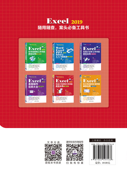(5)为方便读者掌握更多的职场办公技能,本书配备了一个高效办公技能资源包:包括1086节高效办公技巧微课,115节实操案例微课,1326个办公模板,564个Excel函数应用实例,680多页速查、实用电子书和937个设计素材。