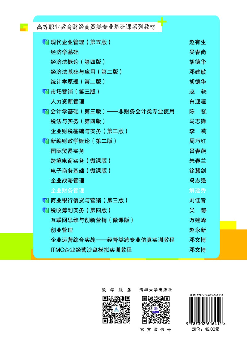 解建秀,辽宁经济职业技术学院教授,研究方向为财务与会计,先后主持课题10余项,发表论文20余篇,主编教材6部,《完善企业财务危机预警系统的思考》获全国高校财经教学研究会三等奖。苏英伟,辽宁经济职业技术学校院副教授,研究方向为管理会计,先后主持课题4项,发表论文10余篇,主编教材1部。李盼盼,辽宁经济职业技术学院,讲师,中级会计师,研究方向为财务管理,先后主持课题3项,发表论文10余篇,北大核心一篇,参编教材3部,2019年入选辽宁省第十三批百千万人才工程“万”人层次人选。