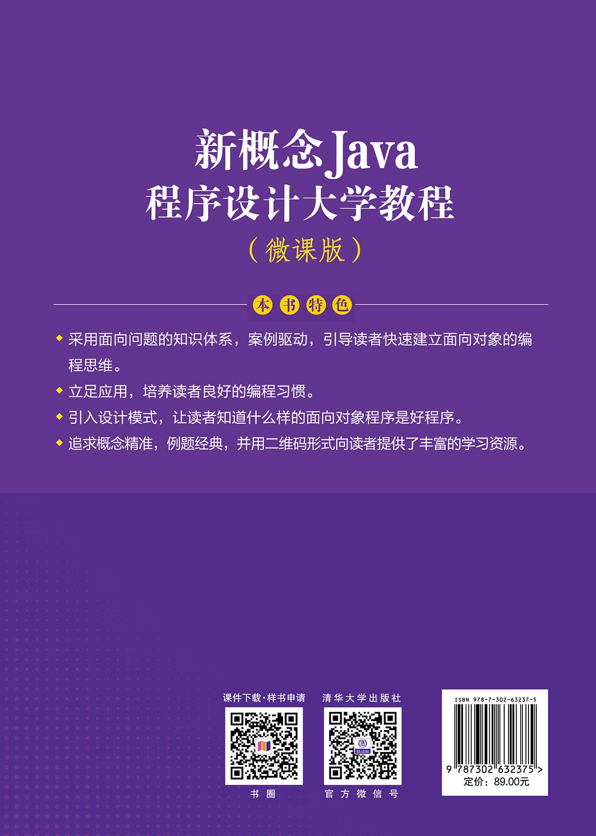 前言 作为一种现代程序设计语言,Java已经发展为集过程式编程、面向对象编程、函数式编程和泛型编程为一体的程序设计平台,并且它具有简单性、健壮性、安全性、动态性、平台独立与可移植性等优势,可以在网络环境下编写分布式、多线程、嵌入式应用程序。 随着大数据、“互联网+”、云计算、人工智能等新兴产业的发展,Java软件人才的需求量越来越大。现状是高校作为Java软件人才的培养输送基地,所培养的学生与企业所需要的人才存有脱节,不能满足企业对应专业岗位的需要。毕业生需要参加一些社会机构组织的Java技术培训或上岗前要经过长时间的培训才能适应岗位工作,这都大大增加了学生的就业成本和企业的用人成本。这些现象,都是Java教学中需要思考的问题。这一局面的形成有多方面的原因: Java教学内容仅停留在知识点本身,没有形成一个完整的知识体系;教学内容过于陈旧,与企业需求严重脱节;重语法轻实践的教学方式;学生没有形成完整的深入人心的面向对象编程思维;等等。这一局面正是编者不断进行程序设计教材探索的动力。 书名《新概念Java程序设计大学教程》中所谓“新概念”,并非编者在一种程序设计语言中添加什么概念,而是希望建立一种新的程序设计教学的模式来改变程序设计教学效率不高甚至不成功的现状。相较于同类教材,本书具有如下特色。 1. 先入为主地让学生一开始就进入面向对象的世界 人人都说,由于对象反映的是真实世界的对象,面向对象程序设计比较直接,容易理解。但是实际情况是,学生学习了面向对象程序设计后,写出来的程序却是面向过程的。原因就在于我们许多教材是从面向过程开始介绍面向对象的。这种先入为...