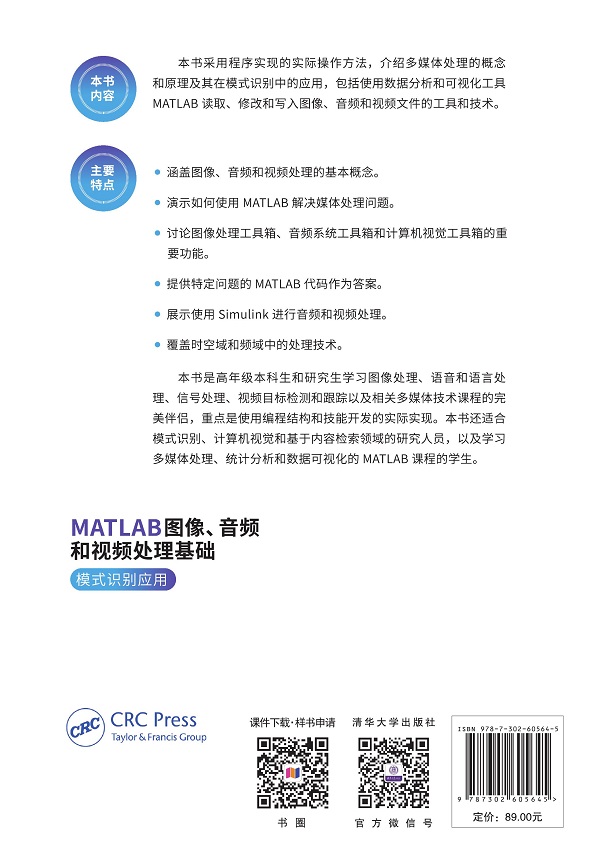 本书是本科高年级生和研究生学习图像处理、语音和语言处理、信号处理、视频目标检测和跟踪以及相关多媒体技术课程的完美伴侣,重点是使用编程结构和技能开发的实际实现。本书还适合模式识别、计算机视觉和基于内容检索领域的研究人员,以及学习多媒体处理、统计分析和数据可视化的MATLAB课程的学生。