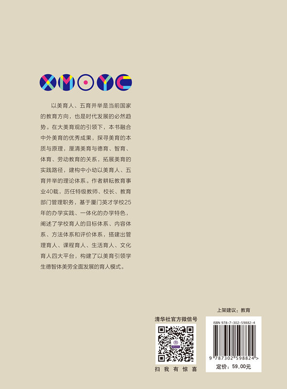 序一 以美融会,以育贯通 受本书的作者、厦门英才学校付晓秋校长的委托,为本书写一段序言,我感到非常荣幸。既是出于对付校长毕生追求教育事业的尊敬,也是出于对我们共同关注和探索的美育的期望。美育这两个字大家都不陌生,在过去的一个世纪当中,我们的社会始终在倡导美育,其间虽有停歇,却从未中断。此外,近年来我们对美育的倡导与以往更有所不同,国家高度重视和支持美育,使得我们有机会在理论上和在实践中对美育进行更为深入的探讨和研究。 我一直认为,美育既是理想的,也是现实的。理想引导着人们不断地向往,现实则是要让这种向往真实落地。如果我们时至今日对美育的认识仍然有所欠缺,那么问题肯定出在“现实”而非“理想”。也就是说,“现实”阻挡了“理想”的实现,“理想”没能脚踏实地。 到目前为止,美育是否应作为一个具体学科仍有待讨论,但美育无疑是一个系统,是一个由许多课程相互衔接而成的教学体系,所以它无法脱离整体而孤立存在。美育的价值体现在教育领域的不同方面,这其中有特殊性,也有共同性,在广义的艺术教育领域中尤其显著。所谓的广义艺术教育,就是超越狭隘的专业壁垒,从艺术思维的角度出发,研究艺术与各个学科之间的关系,目的是启发受教育者能够从不同的立场,重新认识问题,重新思考问题。因此,将美育作为教育研究的前提,教育育人的意义才可以彰显,教育育人的目的才能够达到。没有美育参与的教育,能否算作完整的教育,这本身都是个问题。融美育于教育,融美育于教学,融美育于生活习惯之中的教育,才是我们所有的教育机构、所有的教育工作者需要认真考虑的问题。 教育要立德树人,这是大家的共识。我们常说,需要德、智、体、美、劳“...