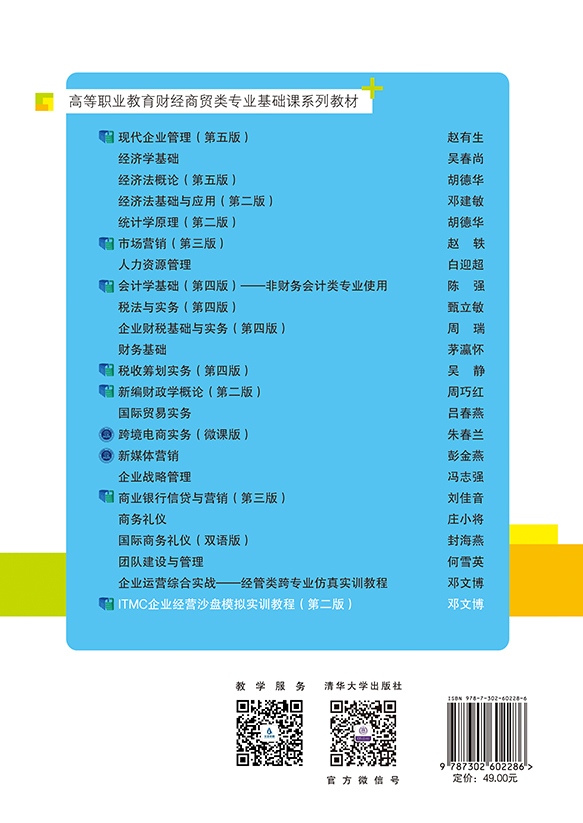 本教材是“十四五”职业教育国家规划教材,校企“双元”合作开发,按照“工学结合、知行和一”的职业教育理念,精选数字经济背景下贴近现代企业管理的新方法、新技术和新流程作为教学内容,并将党的二十大精神有机融入小故事大道理、实操等内容中,旨在提高财经商贸类学生的专业技能和综合素质。 本教材分为基础篇、训练篇和实战篇,共十七个项目。其中基础篇分为两个项目,训练篇分为六个项目,每个项目基于企业工作过程设计教学任务,每个任务包括知识目标、能力目标、素养目标、任务引入、知识链接等内容。实战篇基于成果导向理念,设计对接企业的表单记录实战经营成果。全书主要内容包括企业经营沙盘的基础知识、基本方法、经营策略、分析工具和经营手册。其中基本方法包括分析市场、制订生产计划和采购计划、进行财务预算和规划等;经营策略包括总体战略、广告策略、市场和产品开发策略、固定资产购置策略、融资策略等;分析工具包括竞争对手分析、产销平衡分析、盈亏平衡分析、成本效益分析等。学生在沙盘模拟训练中综合运用管理知识、分析工具和方法,能有效提升战略管理、市场营销、财务管理、生产运作、物流管理、市场信息收集与运用等技能,全面提高综合素质。本教材配有微课堂学习资源,读者可以使用移动终端扫码学习。 本教材可作为高职高专、应用型本科教学用书,适用于参加沙盘模拟比赛的各层次学生,也可作为教师和企业人员的培训用书。本书封面贴有清华大学出版社防伪标签, 无标签者不得销售。