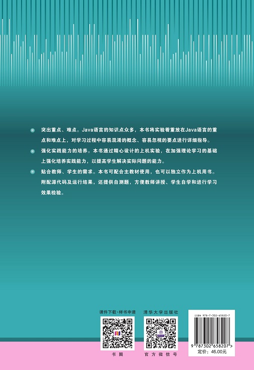 前言 Java程序设计是计算机类专业的核心课程,是一门实践性很强的课程,仅通过阅读教科书或听课是不可能完全掌握的,学习的一个有效方法就是多上机实践。本书从实际教学出发,加强了对Java语言的重点和难点的指导,在实践过程中,强化学生对理论知识的认识,使学生掌握Java语言的基本语法和程序设计的基本方法,让学生基本具备使用Java语言开发系统的能力,并培养学生解决实际问题的能力。 本书是与《Java语言程序设计》(ISBN 978\|7\|302\|56595\|6)配套的实践教程,目的是为学习提供一些指导,为提高学生的编程能力助一臂之力,使学生在实践的过程中少些曲折和彷徨,多些成功的乐趣。为了使学生在上机实验时目标明确,本书针对课程内容编写相对应的实验。为了方便不同背景和实验学时的学生使用,大部分实验都是独立性的实验,在教学过程中,教师可以根据实际情况进行适当选择。由于Java语言的知识点众多,因此本书将实验着重放在Java语言的重点和难点上,对学习过程中容易混淆的概念、容易忽视的要点进行详细指导。在长期的Java语言教学过程中,我们发现学生总是不能将课堂上学到的知识有效地应用于实际编程中,对于遇到的许多问题无从下手,学习效果不佳。针对这些问题,本书中的每个实验后面都给出了详细的实验指导,可以加深学生对所学知识的理解和掌握,从而激发学生的学习兴趣,并为以后更深入地学习Java程序设计打下扎实的基础。 本书既吸收了一些基础性的内容,又有一定的实践项目,逐步介绍Java的各知识点以及程序设计技巧。这样,由起步到简单程序设计,一步一步引导;由简单程序到复杂程序,一步一步解...