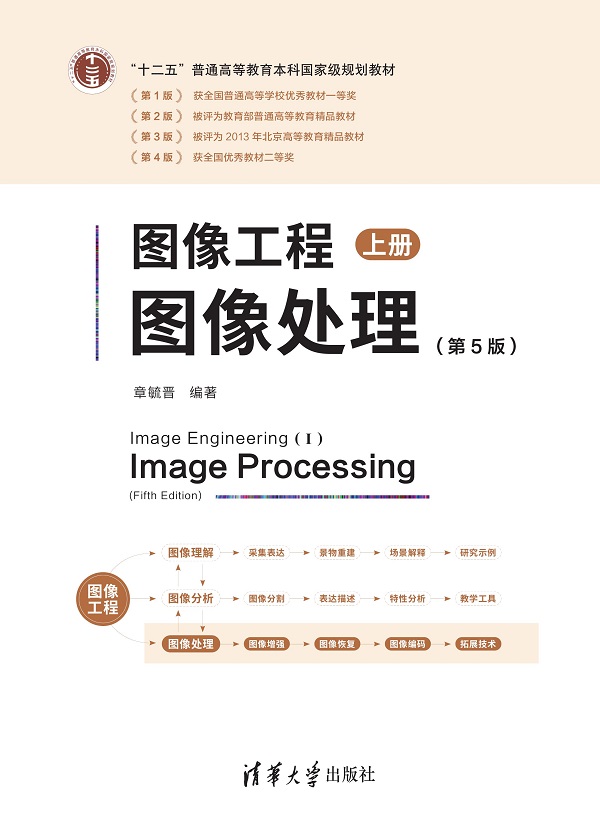 本书为《图像工程》第5版的上册,主要介绍图像工程的第一层次———图像处理的基本概念、基本原理、典型方法、实用技术以及国际上有关研究的新成果。 本书第1章是绪论,介绍图像基础知识并概述全书。图像处理的主要内容分别在4个单元中介绍。第1单元(包含第2~5章)介绍图像增强技术;其中第2章介绍基于像素点操作的空域增强技术,第3章介绍基于模板操作的空域增强技术,第4章介绍频域增强技术,第5章介绍消除图像中噪声的增强技术。第2单元(包含第6~9章)介绍图像恢复技术,其中第6章介绍图像退化模型和恢复技术,第7章介绍图像校正和修补技术,第8章介绍图像去雾及评价技术,第9章介绍图像投影重建技术。第3单元(包含第10~12章)介绍图像编码技术,其中第10章介绍图像编码基础,第11章介绍变换编码技术,第12章介绍其他各种编码技术。 第4单元(包含第13~16章)介绍(图像)拓展技术,其中第13章介绍图像信息安全技术,第14章介绍彩色图像处理技术,第15章介绍视频图像处理技术,第16章介绍多尺度/多分辨率图像处理技术。书中的附录 A介绍了图像方面的一些国际标准,主要与第3单元相关。 本书可作为高等院校信号与信息处理、通信与信息系统、电子与通信工程、模式识别与智能系统、计算机视觉等本科和研究生专业基础课或专业课教材,也可供信息与通信工程、电子科学与技术、计算机科学与技术、测控技术与仪器、机器人自动化、生物医学工程、光学、电子医疗设备研制、遥感、测绘和军事侦察等领域的科技工作者参考。