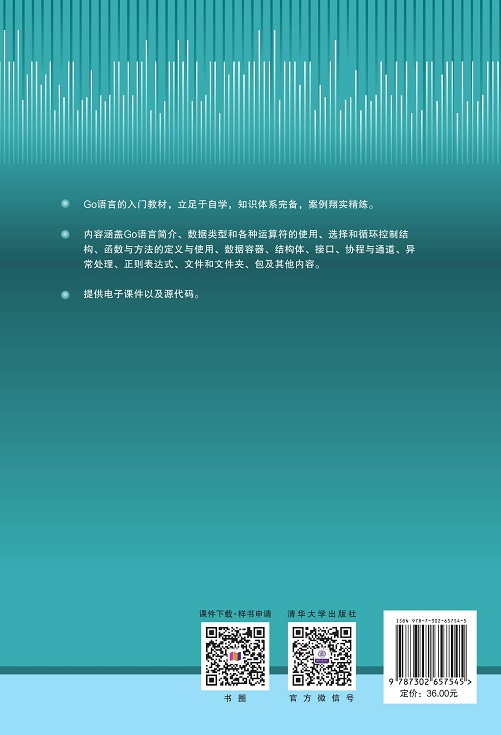 本书立足于自学,知识体系完备,案例翔实精炼,提供配套的电子课件以及全部源代码资源。可以作为高等院校人工智能等相关专业的Go语言教材,也可以作为Go语言爱好者的参考用书。