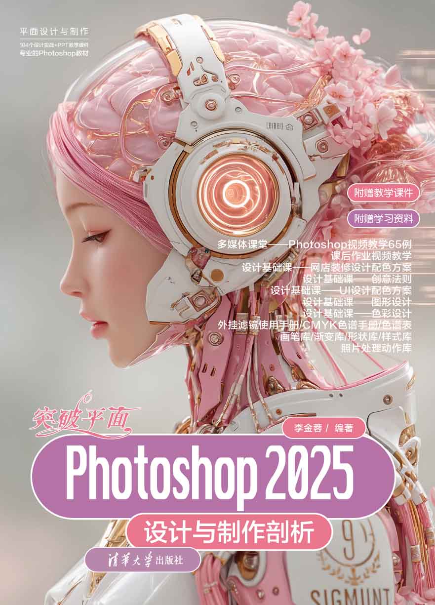 "《突破平面Photoshop 2025设计与制作剖析》是初学者快速学习Photoshop的经典实战教程。书中采用从设计理论到软件讲解,再到实例制作的渐进方式,将Photoshop各项功能与平面设计工作紧密结合,实例数量多达104个,其中既有抠图、蒙版、绘画、修图、照片处理、文字、滤镜、人工智能等Photoshop功能学习型实例;也有网店装修、影楼修图,以及UI、VI、包装、海报、插画、网页等设计项目的实战型案例。本书实例经典、技法全面,具有较强的针对性和实用性。读者在动手实践的过程中可以快速掌握软件的使用技巧,了解设计项目的制作流程,充分体验学习和使用Photoshop的乐趣,并做到学以致用。 《突破平面Photoshop 2025设计与制作剖析》适合广大Photoshop爱好者,以及从事广告设计、平面创意、网店装修、影楼修图、包装设计、插画设计、UI设计和网页设计的人员学习参考,也可作为相关院校和培训机构的教材。《突破平面Photoshop 2025设计与制作剖析》还提供了PPT教学课件,方便老师教学时使用。"