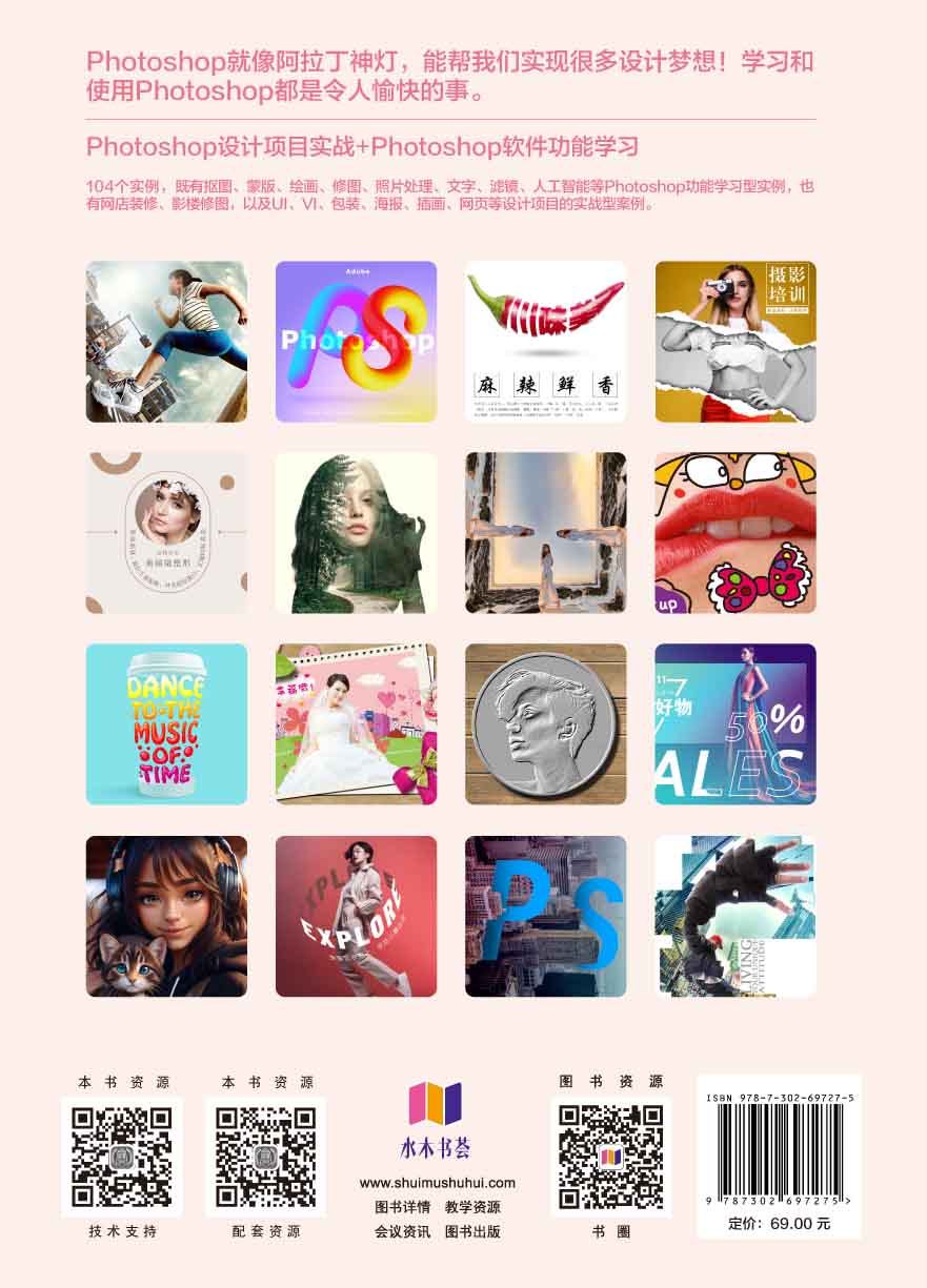 前言 笔者非常乐于钻研Photoshop。此软件就像阿拉丁神灯,可以帮助我们实现自己的设计梦想,而且学习和使用Photoshop都是令人愉快的事。 任何一款软件,想学会其实都不难,但要做到精通就不太容易了,Photoshop也是如此。要想将其学好,一是培养兴趣,二是多实践。没有兴趣,就没有动力,也体验不到学习的乐趣;不实践,则无法将所学知识同设计工作很好地结合起来。 基于此,本书每章会先介绍设计理论;之后讲解Photoshop功能并提供相应的实例,这些实例兼具实用性与趣味性,或展现软件功能的应用,或者用来完成一项设计任务。第1~10章结尾布置了课后作业和复习题,第11章为综合实例。全书力求在一种轻松、快乐的学习氛围中,带领读者逐步深入地了解Photoshop,并通过实践掌握其在平面设计领域的应用。 内容安排上,本书侧重于实用性强的功能,以便让读者更加快速地掌握软件的使用技巧。技术设置上,不仅深入地挖掘了Photoshop的潜力,还突出了各功能之间的横向联系,以增强读者使用多种功能进行创作的能力。104个不同类型的实例和78个教学视频,能让读者了解设计项目的制作流程并亲自动手操作,真正做到学以致用。 本书配套资源包含实例资源、附赠资源、复习题答案和PPT教学课件。实例资源包括实例的素材文件、最终效果文件、课后作业的视频教学。附赠资源则包括照片处理动作库、画笔库、形状库、渐变库和样式库,以及大量的学习资料,包含《UI设计配色方案》 《网店装修设计配色方案》 《色彩设计》 《图形设计》 《创意法则》 《CMYK色谱手册》 《色谱表》 《外挂滤镜使用手册》...