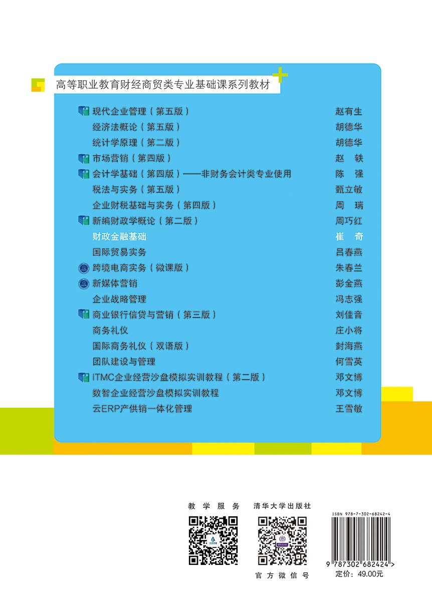 " 本书遵循“经世济民,立德树人”的指导思想,以现行财政金融法律、法规为依据,对照人才培养方案和课标,对标岗位需求,遵循认知—能力—实践规律,重构内容体系,共有10个项目、38个任务。各项目互相联系,融会贯通,宽基厚德,分层递进,既充分反映我国财政金融行业改革发展成果,又兼顾我国财政金融现状及发展趋势。 本书内容选择既注重学科基本理论的介绍,又强调学以致用,培养学生以财政学、金融学的视角观察现实社会,运用财政金融的思维方法分析社会问题。本着内容实用、形式新颖、激发兴趣的原则,本书设计“自主探究”“知识拓展”栏目,引导学生学习主体意识归位;“数说财金”“财政金融与国计民生”特色栏目注重价值观引导,厚植家国情怀;“学以致用”栏目贴近经济师考试和技能大赛要求。 本书以纸质教材为核心,同时以二维码形式呈现“财经史话”“财经素养”,提供微课视频、教学课件、参考答案等数字化教学资源,方便教学与自学。本书适用于高职院校经管类非财政学、金融学专业学生使用,也可供财政金融业务培训使用,还适用于想要了解财政金融基础知识和基本业务的一般读者。 "