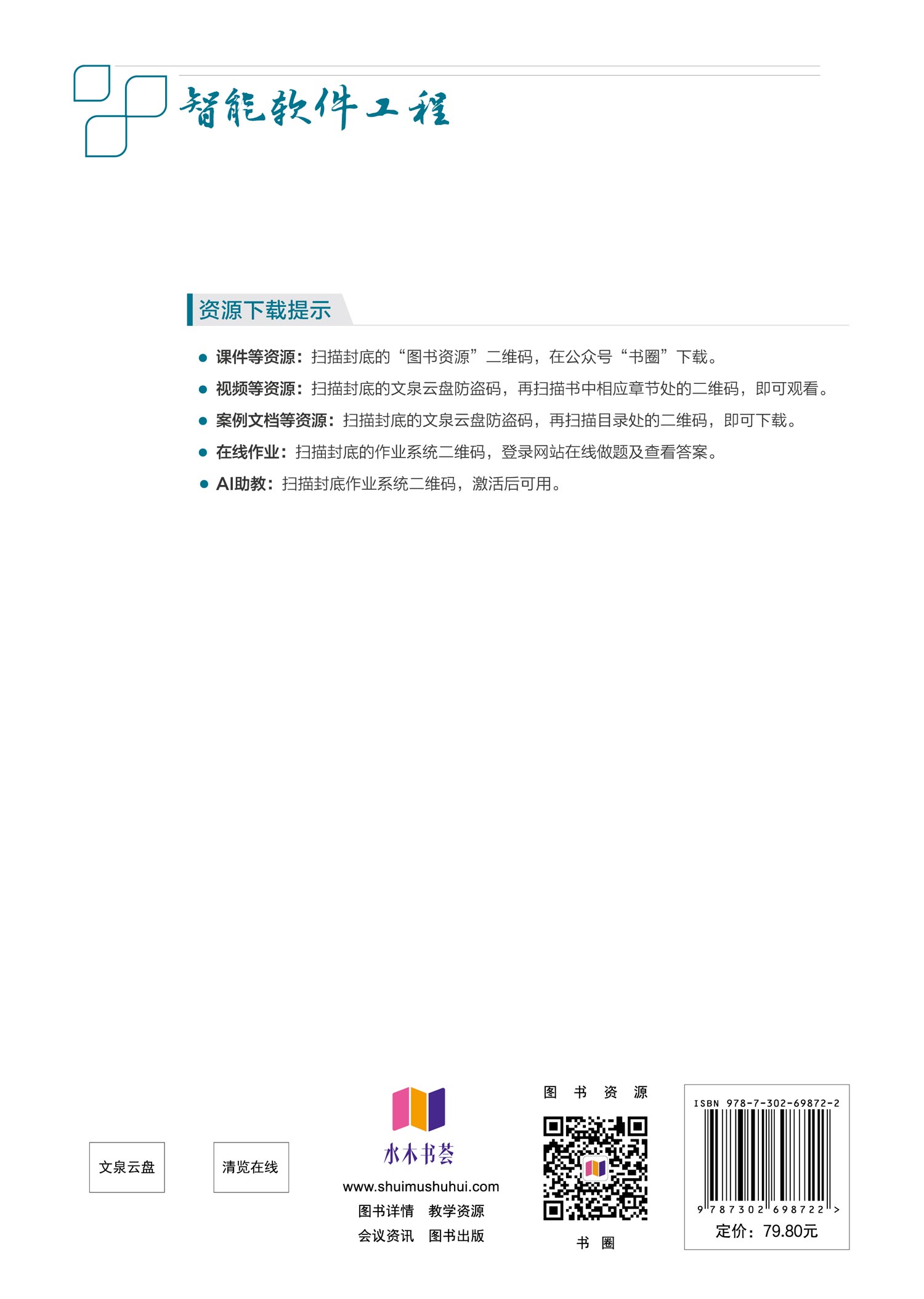 覆盖软工核心内容与发展趋势,探讨AI在软工中的应用,配套视频、题库、课件、大纲、教案等。