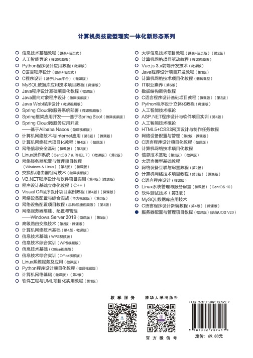 前言 1. 编写背景 党的二十大报告明确提出“坚持科技是第一生产力、人才是第一资源、创新是第一动力”。在信息技术应用创新(信创)战略加速推进的背景下,发展自主可控的国产操作系统已成为保障国家信息安全、突破关键领域“卡脖子”技术的核心任务。统信软件技术有限公司研发的UOS操作系统,凭借高安全性、强兼容性及开源生态优势,已在政务、金融、教育等关键领域实现规模化部署。为响应国家信创人才培养需求,本书立足国产化技术生态,系统构建服务器运维能力体系,助力实现核心技术自主可控目标。 2. 本书特点 本书提供一站式课程解决方案和立体化教学资源,助力“易教易学”,对接“全国大学生计算机系统能力大赛”。 1) 素质引领,厚植家国情怀 本书精心设计,在专业内容的讲解中引入科学精神和爱国情怀,通过讲解中国计算机领域的重要事件和人物,弘扬精益求精的专业精神、职业精神和工匠精神,培养学生的创新意识,激发学生的爱国热情。 2) 满足国家自主可控操作系统和信息技术应用创新发展的战略需求 本书作为国产操作系统统信UOS V20的教学用书,教学案例经过20多年的积累和创新,为培养使用国产操作系统的应用型人才提供了极佳的教学方案,完全满足国家自主可控操作系统的发展需求,为信息技术应用创新国产操作系统的发展提供了支持。 3) 提供“教、学、做、导、考”一站式课程解决方案 本书是浙江省专业教学资源库核心课程配套教材。本书提供了“微课+3A学习平台+共享课程+资源库”四位一体教学平台,配有知识点微课和课堂慕课,教学视频和实训视频全部放在课程网站供大家下载学习和在线观看;本书还提供了教学中用到...