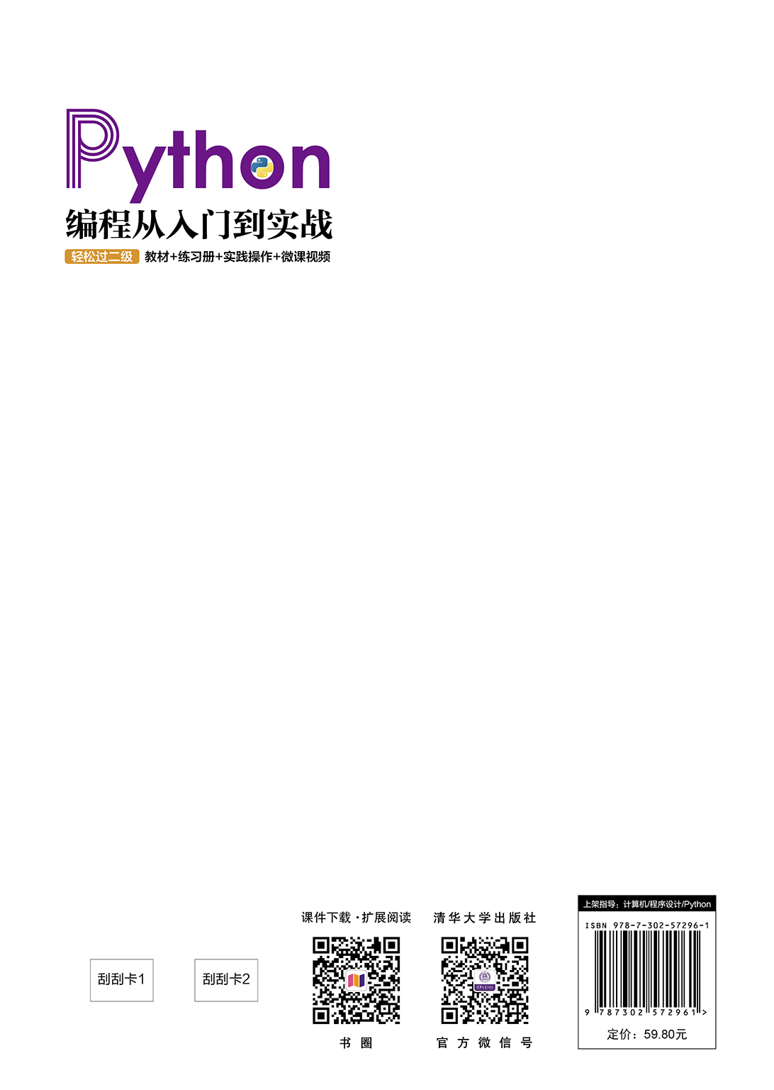 前言 程序设计是高校计算机、电子信息、工商管理等相关专业的必修课程。Python语言是一种解释型、面向对象的计算机程序设计语言,广泛用于计算机程序设计教学语言、科学计算、数据分析、网络爬虫、人工智能、机器学习、大数据、Web开发、游戏开发、系统管理编程脚本语言等,特别适用于快速开发应用程序。Python语言深受开发者的喜爱,已经成为最受欢迎的程序设计语言之一。 本书集教材、练习册、上机指导于一体,基于Python 3.8版本,介绍了Python语言的基础知识,以及使用Python语言开发的应用实例。本书全面覆盖计算机等级考试二级Python语言的知识范围,具体内容包括程序设计导论、Python语言基础、程序流程控制、函数和代码复用、组合数据和数据结构基础、输入输出和文件处理、数值和日期处理、字符串和文本处理、面向对象的程序设计、模块化程序设计、数据库访问以及Python计算生态(Python第三方库)等。 为了更好地帮助读者理解和掌握知识点及应用技能,本书提供了450个知识点实例、430道复习题(选择题、填空题和思考题)、350个实践操作任务和综合应用案例。 本书配套资源丰富,包括教学大纲、教学课件、程序源码、电子教案等; 本书还提供300分钟教学视频,方便读者反复观看和学习课程相关内容; 本书还提供了计算机等级考试二级(Python程序设计)题库(真题和模拟题)自测平台,作为学习和考级的辅助学习资源,该题库随时增补完善。 资源下载提示 课件等资源: 扫描封底的“课件下载”二维码,在公众号“书圈”下载。 素材(源码)等资源: 扫描目录上方的二维...