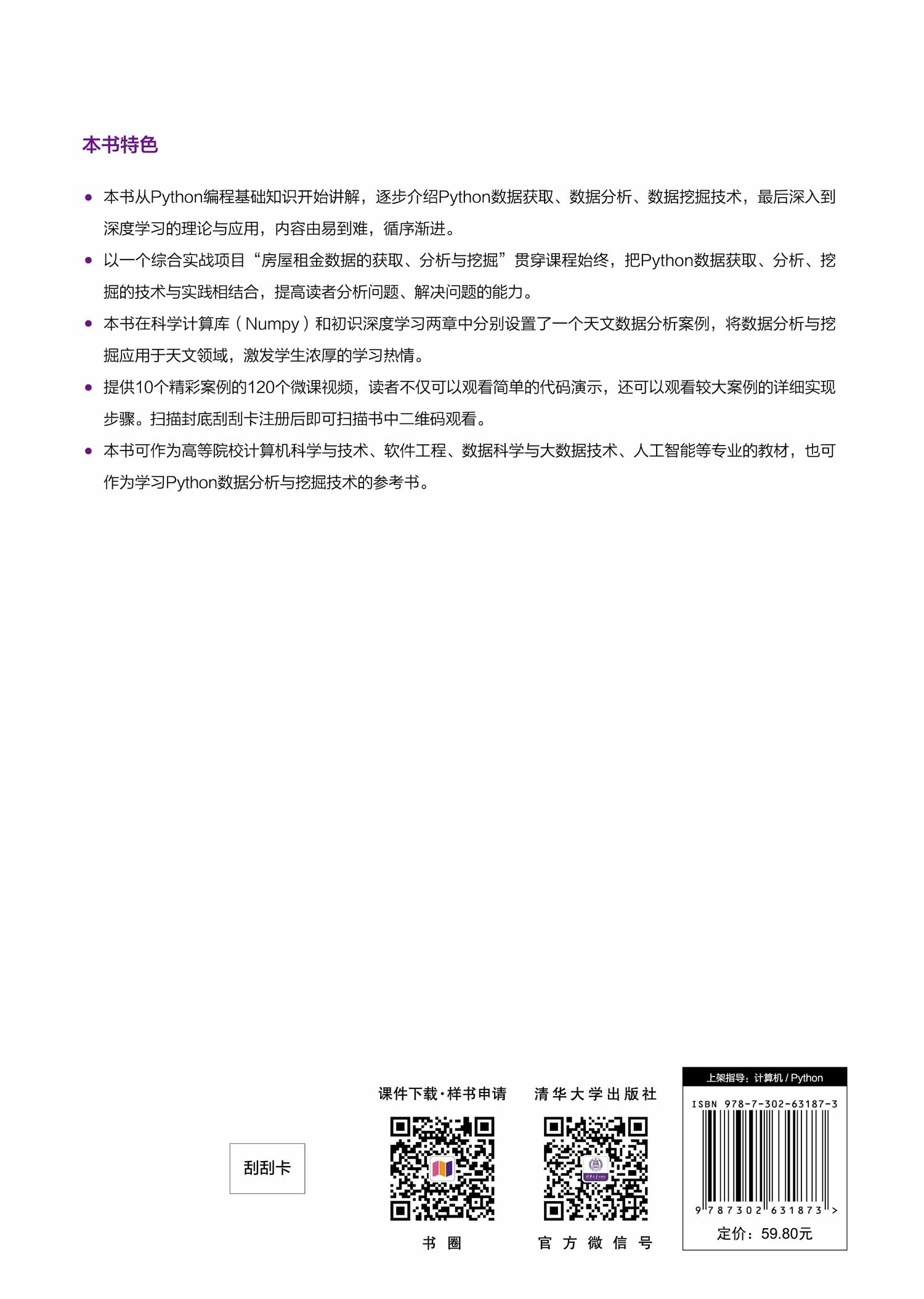 4.编写了10个精彩案例和100个微课视频,帮助学生资助学习。