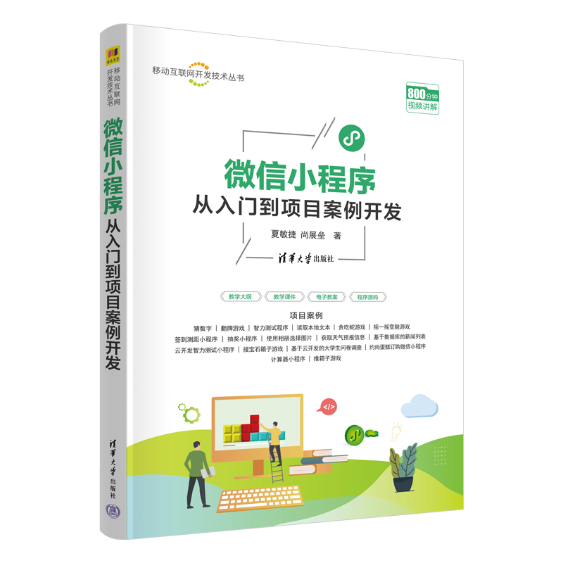 "本书以开发案例为导向,让读者对枯燥的微信小程序学习充满乐趣,通过具体案例讲解微信小程序开发,不仅有利于知识点的掌握,更重要的是让读者学会微信小程序编程技术和技巧,了解微信小程序设计的原理。书中不仅列出了完整的代码,同时对所有的源代码进行了非常详细的解释,做到了通俗易懂,图文并茂。