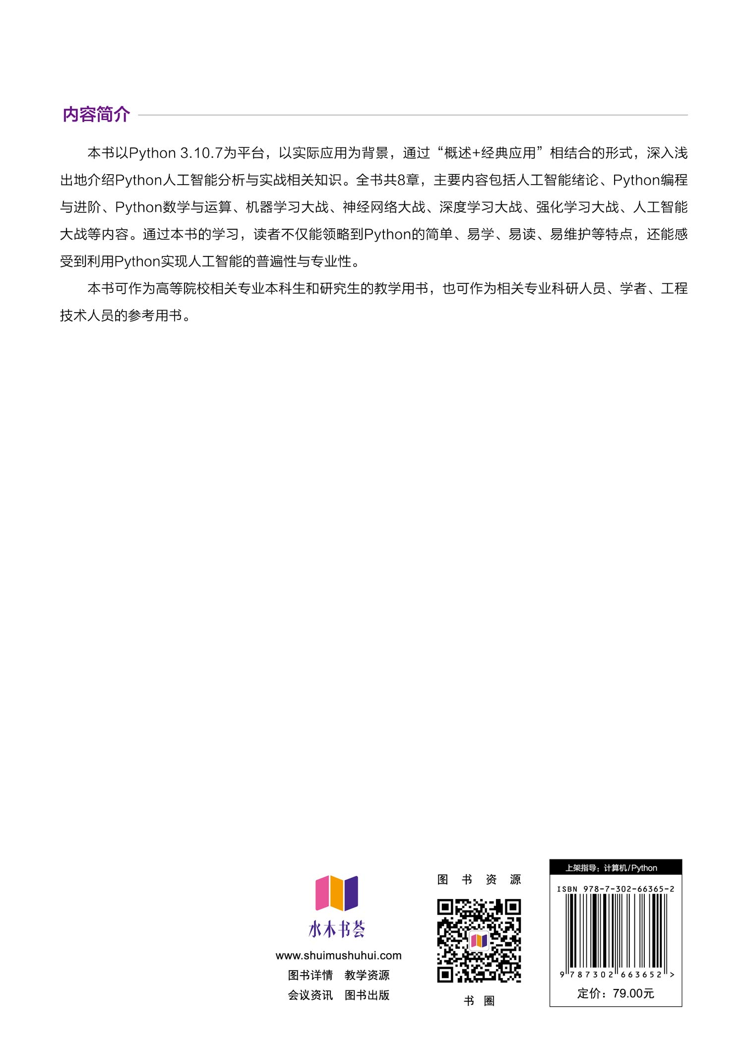 "实用性强:本书紧密结合实际应用背景,通过深入浅出的方式,引导读者逐步掌握Python在人工智能领域的实战技巧。