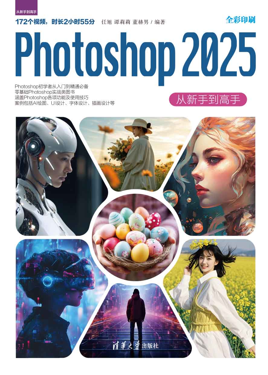 "《Photoshop 2025从新手到高手》为针对Photoshop?2025的综合性教程,内容包含从基础工具操作到高级设计技巧的系统讲解,旨在帮助读者全面掌握Photoshop?2025的核心功能及AI新技术,进而有效提升工作效率,创作出具有专业水准的设计作品。 《Photoshop 2025从新手到高手》共13章,从Photoshop 2025的界面与基础操作讲起,逐步深入阐述图像编辑的核心方法。内容涵盖海报设计、平面构成、版式设计、插画绘制、AI技术应用、摄影后期、图像合成、UI设计、字体设计、滤镜调整等多个设计领域,系统解析选区、图层、绘画与图像修饰、调色、蒙版、通道、矢量工具、路径、文本工具、滤镜以及AI智能绘图等软件功能及其实际应用方式,并通过综合实例学习,帮助读者整合所学知识,在实际工作中灵活运用。 《Photoshop 2025从新手到高手》既适用于Photoshop初学者快速入门,也适合有一定基础的设计人员深入探究新版本功能。对于平面设计爱好者、UI设计师、电商设计师等专业人士来说,《Photoshop 2025从新手到高手》可作为提升工作效率与创作水平的实用工具。同时,本书内容结构清晰、讲解全面,也适合作为相关院校及培训机构的专业教材,为培养未来设计人才提供有力支持。"
