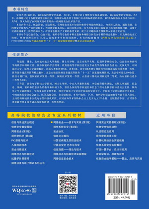 全书共分3篇15章。第1篇为网络安全基础,共3章,主要讨论了与网络安全有关的基础知识;第2篇为密码学基础,共5章,详细地讨论了网络安全中所涉及的各种密码技术;第3篇为网络安全技术与应用,共7章,深入介绍了在实践中常用的一些网络安全技术及产品。本书内容丰富,概念清楚,语言精练。在网络安全基本知识和保密学理论的阐述上,力求深入浅出,通俗易懂;在网络安全技术与产品的讲解上,力求理论联系实际,具有很强的实用性。本书在每章的后面提供了大量思考题和练习题,以便于读者巩固课堂上所学的知识;在书末也提供了大量的参考文献,便于有兴趣的读者继续深入学习有关内容。本书可作为信息安全、信息对抗、密码学等专业的本科生和研究生的网络安全课程教材,也可以作为网络安全工程师、网络管理员和计算机用户的参考书和培训教材。