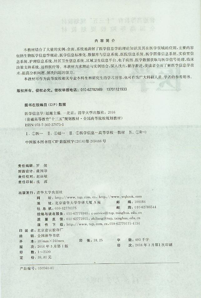 本教材结合了大量的实例,全面、系统地讲解了医学信息学的理论知识及其在医学领域的应用,主要内容包括生物医学信息学概论、医学信息标准化、数据库与信息系统、医院信息系统、医学图像信息系统、实验室信息系统、护理信息系统、社区卫生信息系统、区域卫生信息平台、电子病历、医学数据获取与医学信号处理、临床决策支持系统、远程医疗等。本教材力求理论与实例结合,深入浅出,循序渐进,使读者全面了解医学信息学技术,提高分析问题、解决问题的能力。 本教材可作为高等院校相关专业本科生和研究生的学习用书,也可作为广大科研人员、学者的参考用书。
