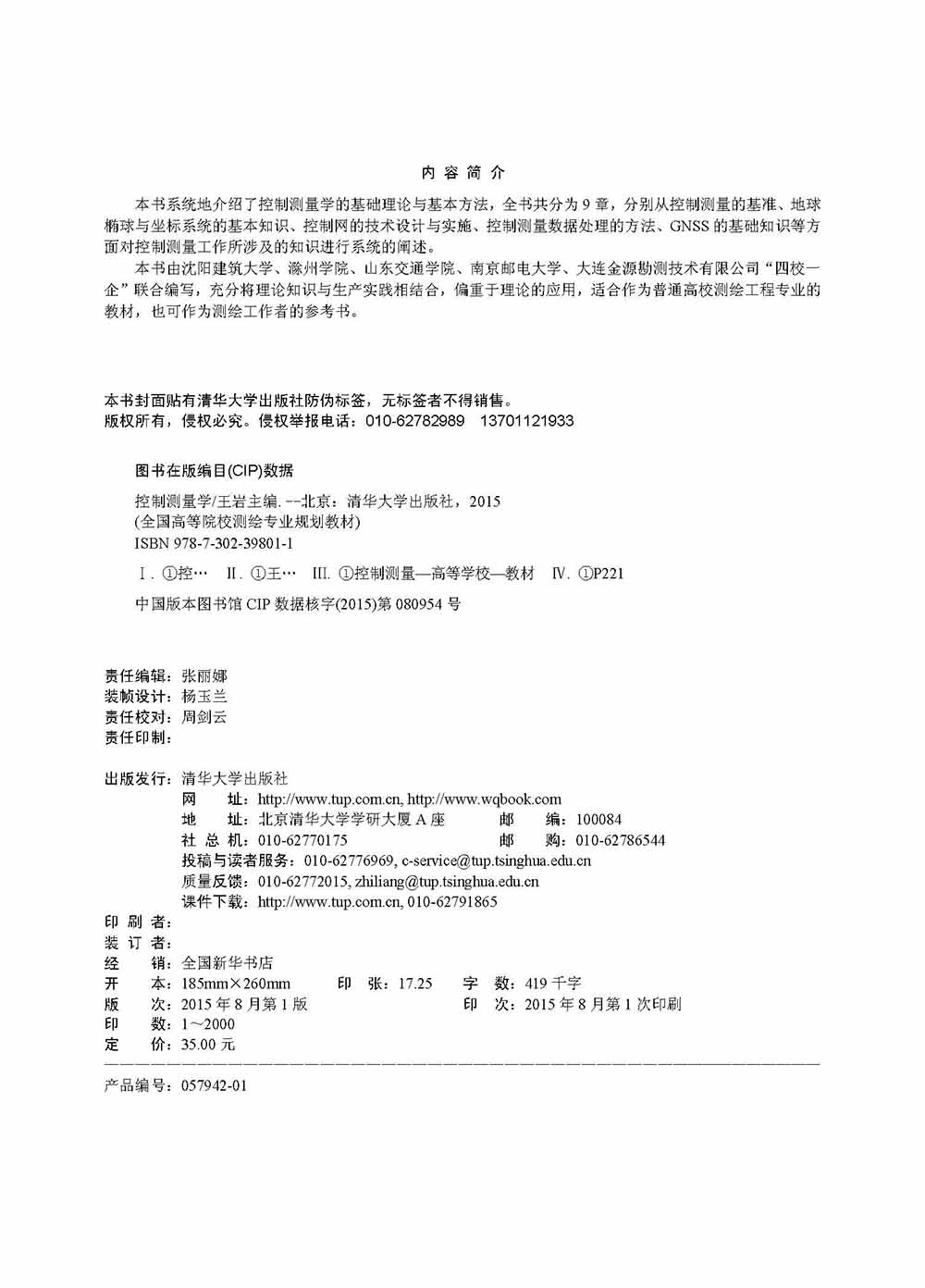 本书系统地介绍了控制测量学的基础理论与基本方法,全书共分为9章,分别从控制测量的基准、地球椭球与坐标系统的基本知识、控制网的技术设计与实施、控制测量数据处理的方法、GNSS的基础知识等方面对控制测量工作所涉及的知识进行系统的阐述。 本书由沈阳建筑大学、滁州学院、山东交通学院、南京邮电大学、大连金源勘测技术有限公司“四校一企”联合编写,充分将理论知识与生产实践相结合,偏重于理论的应用,适合作为普通高校测绘工程专业的教材,也可作为测绘工作者的参考书。