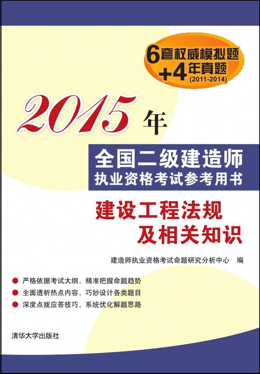 全书共分为四个部分,即第一部分, 全国二级建造师职业资格考试指南;第二部分,全国二级建造师职业资格考试备考策略;第三部分,《建设工程法规及相关知识》临考冲刺实战预测试卷与参考答案解析;第四部分,2011——2014年全国二级建造师职业资格考试《建设工程施工管理》真题与参考答案解析 。