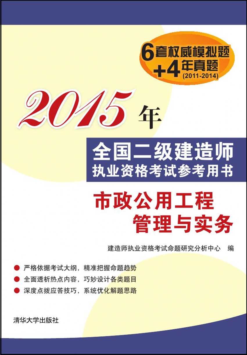 全书共分为四个部分,即第一部分, 全国二级建造师职业资格考试指南;第二部分,全国二级建造师职业资格考试备考策略;第三部分,《市政公用工程管理与实务》临考冲刺实战预测试卷与参考答案解析;第四部分,全国二级建造师职业资格考试《市政公用工程管理与实务》2011——2014真题与参考答案解析 。