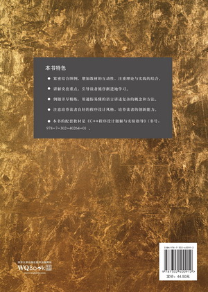 本书是我们多年来进行应用型人才培养教学内容和课程体系改革的综合成果。本书内容以面向工程实践和编程能力训练为主,具有较强的可读性和应用性,为计算机程序设计课程教学内容和课程体系改革构建了一个全新的框架。 C++语言是在C语言基础上扩充了面向对象机制而形成的一种面向对象程序设计语言,它继承了C语言的全部优点和功能,同时还支持面向对象程序设计。C++语言现在已经成为介绍面向对象程序设计的首选语言,被普遍地应用于科学技术和日常生活的各个领域。 本书共分10章。第1章为C++语言概述,介绍C++语言的发展和特点以及Visual C++6.0编译系统的使用方法等;第2章为C++语言程序设计基础,介绍基本数据类型、运算符及表达式、数据类型转换等;第3章主要包括算法、选择结构语句和选择结构程序设计、循环语句和循环结构程序设计以及预处理等;第4章主要包括函数概念和定义、函数间的参数传递、函数调用、变量的存储类别等;第5章主要包括一维数组、二维数组介绍,字符数组、常用字符处理函数的基本使用方法等;第6章主要包括指针的定义、指针的操作、指针与数组、指针与函数、引用及其应用等;第7章和第8章详细叙述了C++语言支持面向对象程序设计的基本方法,包括类、对象、派生类、继承;第9章介绍多态性和虚函数;第10章介绍流类库和输入输出操作。 本书所讲述的内容既有对C语言重要内容的复习,又有C++语言的主要内容,并且以讲解面向对象的三大特性(封装性、继承性和多态性)为重点,系统地介绍了C++语言编程所用的全部内容。 本书内容安排由浅入深,讲解方法通俗易懂。本书以丰富的例题讲解操作方法、验证语法规则,例...