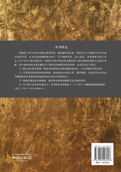 前 言 伴随着.NET平台的不断升级和完善,其优点逐渐被越来越多的人所认识,很多企业、单位和个人开始基于该平台进行软件开发。本书全面而细致地介绍了.NET编程技术,深入浅出、由易到难详细介绍有关.NET平台下的所有开发技术,同时每个技术和知识点都采用了例程讲解为主的方式进行介绍,每个知识和技术要点都给予了翔实的例程及代码分析。本书知识点全面、所选实例独具代表性,从多角度介绍.NET开发技术。 本书共分11章,主要内容包括语法基础、窗体编程、数据库应用开发及Web开发四部分主要内容。 第1~4章是语法基础:其中第1章介绍Visual Studio开发环境及编写HelloWorld程序;第2章介绍数据类型、常量变量、运算符和表达式、输入输出这些编程基础知识;第3章介绍分支、循环等基本流程控制结构和数组;第4章介绍类、方法、属性、继承、多态、重载、接口和异常处理这些面向对象的基础知识。 第5~7章是窗体编程:其中第5章介绍窗体、控件、事件的概念,常用窗体控件、容器控件、消息框、通用对话框、菜单和工具栏等;第6章介绍目录和文件列表的显示,文件的复制、移动、重命名及读写等基本操作;第7章介绍线程的创建和同步。 第8章和第9章是数据库应用开发:其中第8章介绍数据的连接,数据的增、删、改、查操作;第9章介绍LINQ和EF。 第10章和第11章是Web开发:其中第10章介绍ASP.NET WebForm开发,介绍Web开发与窗体开发的区别及Web开发常用控件;第11章介绍ASP.NET MVC开发模式。 全书配有大量的图例及代码说明,如果希望掌握...