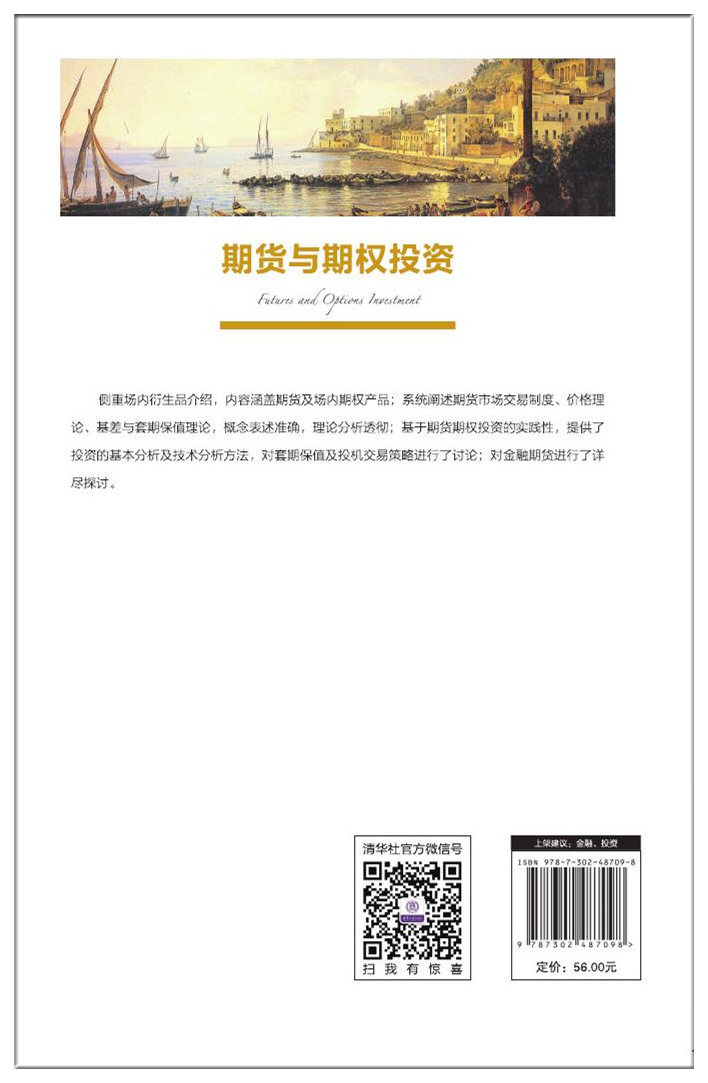 《期货与期权投资》侧重场内衍生品介绍,内容涵盖期货及场内期权产品,系统阐述期货市场交易制度、价格理论、基差与套期保值理论,概念表述准确,理论分析透彻;基于期货期权投资的实践性,提供了投资的基本分析及技术分析方法。