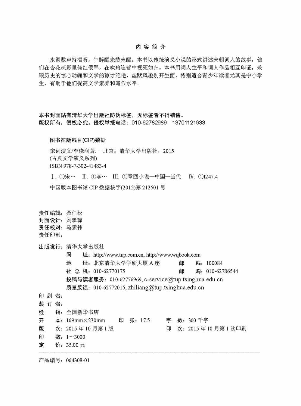 水调数声持酒听,午醉醒来愁未醒。本书以传统演义小说的形式讲述宋朝词人的故事,他们在杏花疏影里倚红偎翠,在吹角连营中视死如归。本书用词人生平和词人作品相互印证,兼顾历史的惊心动魄和文学的惊才绝艳,幽默风趣别开生面,特别适合青少年读者尤其是中小学生,有助于他们提高文学素养和写作水平。
