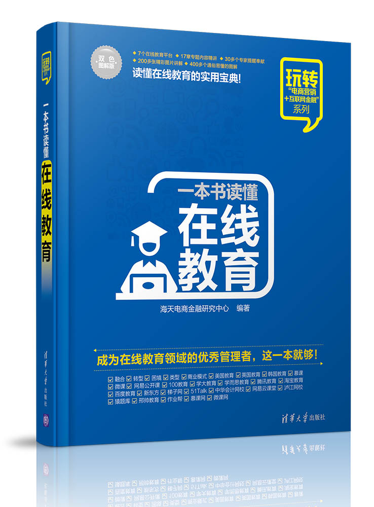 本书是一本全面揭秘在线教育运营模式、盈利技巧、平台类型、网站发展、多元产品、未来动态的专著,特别是对学大教育、学而思教育、新东方教育、腾讯教育、淘宝教育、百度教育、中华会计网校、网易云课堂、沪江网校、猿题库等影响力很大的教育平台,以及慕课、微课案例进行了分析,为教育企业的跨界、转型提供实战指导。 全书分为三篇:认识篇、模式篇、案例篇。所有内容零基础、全图解,通过7个在线教育平台详解、17章专题内容详解、30多个专家提醒奉献、200多张图片、400多个通俗易懂的图解,深度剖析在线教育的精华之处,让您一书在手,即可彻底读懂在线教育模式,熟练掌握、运用在线教育平台,从新手成为在线教育领域内的高手! 本书结构清晰、语言简洁、图解丰富,尤其是对于网易公开课、学大教育、学而思教育、新东方教育等的深入剖析,十分全面,适合互联网在线教育机构的管理者、在线教育行业的从业者、对在线教育感兴趣的人士,以及希望通过在线教育这个热门领域获得第一桶金的投资者与创业者阅读,同时也适合传统教育向O2O教育转型的教育机构、想构建网校的教育机构及教育类企业参阅。
