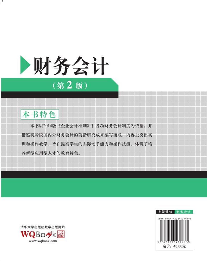 《财务会计(第2版)以2014版《企业会计准则》和各项财务会计制度为依据,并借鉴现阶段国内外财务会计的前沿研究成果编写而成,内容上突出实训和操作教学,旨在提高学生的实际动手能力和操作技能,体现了培养新型应用型人才的教育特色。