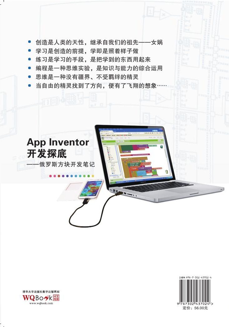 App Inventor是一款开发安卓应用的可视化编程工具,它提供了一种可拼接、图形化的语言块,使得编写程序如同拼装积木一样简单易学。虽然App Inventor具备了常规编程语言所应具有的基本语言要素,但由于其简单易用,仍然被认为是适合初学者入门的语言。 本书以MIT App Inventor编程工具为基础,采用“开发笔记”的叙述方式,通过一个经典的俄罗斯方块游戏的开发,以进化的方式向读者演绎编程的过程,不仅使读者尤其是初学者能够掌握软件编程的基本知识,同时也能充分了解、体验和领悟软件开发的基本思路与方法。