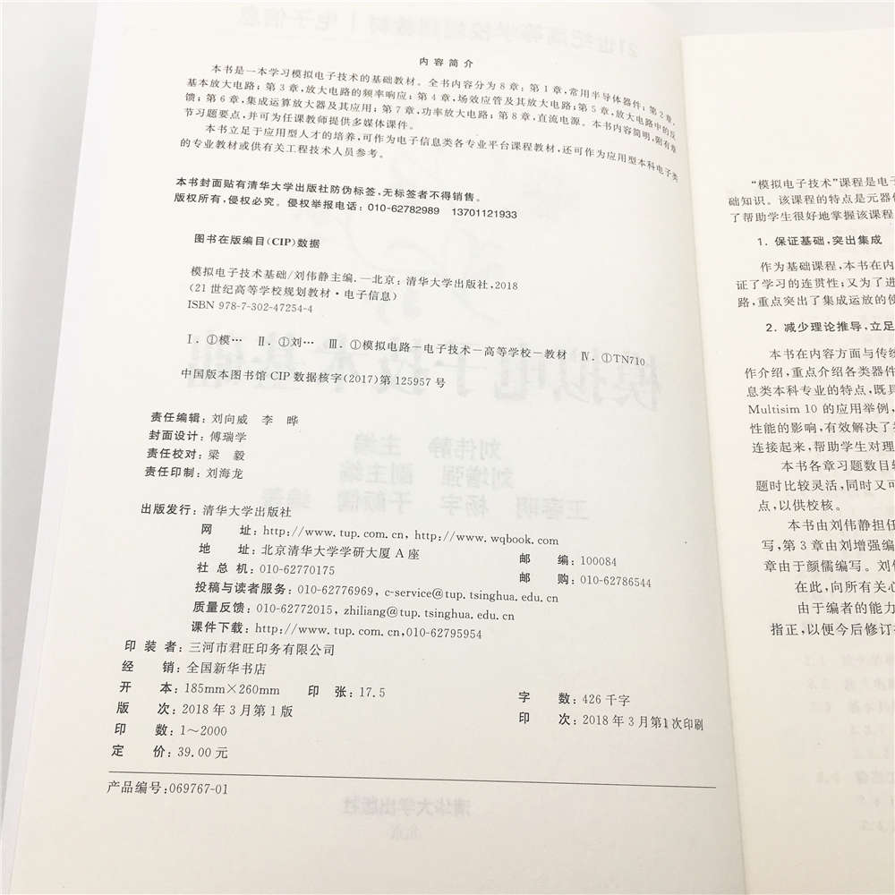 本书是一本学习模拟电子技术的基础教材。全书内容分为8章: 第1章,常用半导体器件; 第2章,基本放大电路; 第3章,放大电路的频率响应; 第4章,场效应管及其放大电路;第5章,放大电路中的反馈; 第6章,集成运算放大器及其应用; 第7章,功率放大电路; 第8章,直流电源。本书内容简明,附有章节习题要点,并可为任课教师提供多媒体课件。 本书立足于应用型人才的培养,可作为电子信息类各专业平台课程教材,还可作为应用型本科电子类的专业教材或供有关工程技术人员参考。