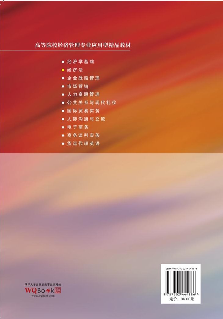 市场经济的持续稳定发展离不开法律保障。本书对经济类、管理类从业人员必须掌握的经济法律知识作了广泛的阐述。以国家最新颁布和修订的市场经济法律、法规为依据,以调整市场主体及其市场行为的法律规范如公司法、合同法、市场规制法等为重点,在进行必要的理论讲述的同时,尤其重视教材的专业针对性和实践应用性,结合创业、就业需要、注重案例教学,培养读者自觉守法、用法的意识和解决经济法律问题的实际能力。