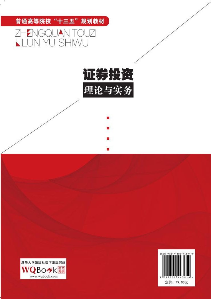 本书系统地阐述了证券投资的理论基础和分析方法,分11个项目,包括证券投资概述、证券投资工具、证券市场、证券投资基本分析、上市公司分析、技术分析理论、技术分析指标、证券交易、证券投资的策略与技巧、金融衍生工具、证券市场监管等内容。本书立足高等教育的特色和要求,力求实现理论联系实际,突出实践操作,并具有一定的前瞻性。 本书可作为普通高等院校金融学专业、财经类专业的教材,也可以作为金融证券从业人员和证券投资者系统学习相关理论知识的参考用书。