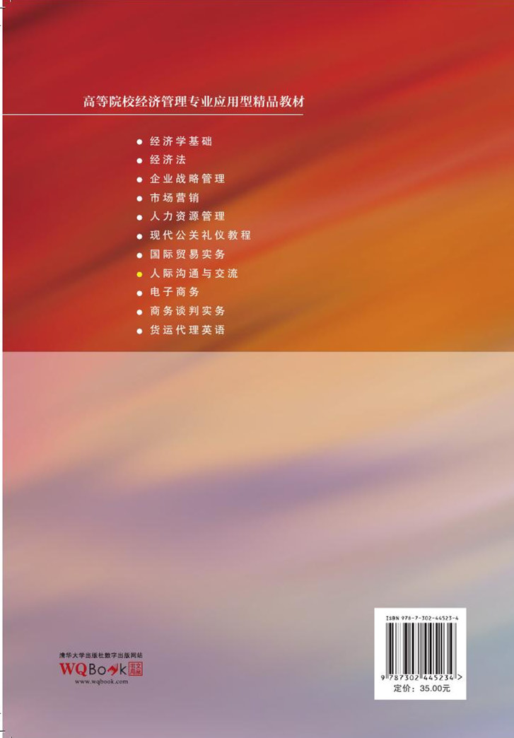 2016年6月2015年3月,经国务院授权,国家发改委、外交部、商务部发布《推动共建丝绸之路经济带和21世纪海上丝绸之路的愿景与行动》。根据我国“一带一路、互联互通”总体发展战略的制定与实施,随着我国改革开放和社会主义市场经济的加速推进,中国市场国际化的特征越发凸显。 经济发展虽然需要科学技术的支撑、市场经济虽然强调竞争,但是更需要注重挖掘人的潜力、发挥人的潜能,更要讲究合作;经济发展与社会和谐已成为当今世界公认的主题,而成功的根基却又取决于更大范围的人际沟通与交流。 美国普林斯顿大学对1万份人事档案进行分析,结果发现“智慧、专业、技术、经验”只占成功因素的25%,其余75%取决于良好的人际沟通。哈佛大学就业指导小组调查结果也显示,在500名被解职的职员中,因人际沟通被解雇的占82%。这都说明人际沟通能力的重要性。 高科技的发展驱使社会分工越来越细,使国际社会逐渐演变成“千人糕”的社会,国际市场呈现出谁也离不开谁的服务关系,而经济要发展、事业要进取,就必须注重规模经营效益、就必须注重加强团队合作、就必须注重加强人际沟通与交流。 交流有利于拉近人与人之间的距离,沟通有助于增进员工相互理解、增强团队的融合与凝聚力,交际能力是当今社会成功人士最基本、最重要的素质。然而当今社会却是网络开放了世界、封闭了人。经营、就业等竞争的加剧使得人群之间越来越陌生,建立良好的人际关系是生存和发展的必要条件,经济发展呼唤人际沟通、社会和谐要求人际交流。为此许多院校注意到这一社会实际问题,创新增加了这门实用课程,本书的出版对学生进入社会、就业创业具有一定意义。 本书作为高等教育经济管理专业的特...