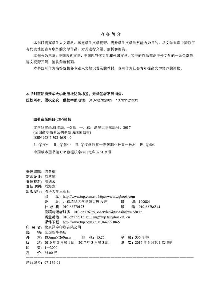 在编写本书第3版时,根据前两版的教学情况及学生和读者的反馈意见,对书稿内容进行了微调,修改了少量的不妥或错误之处,力争使本书更适合高等院校教学使用和文学爱好者阅读参考。