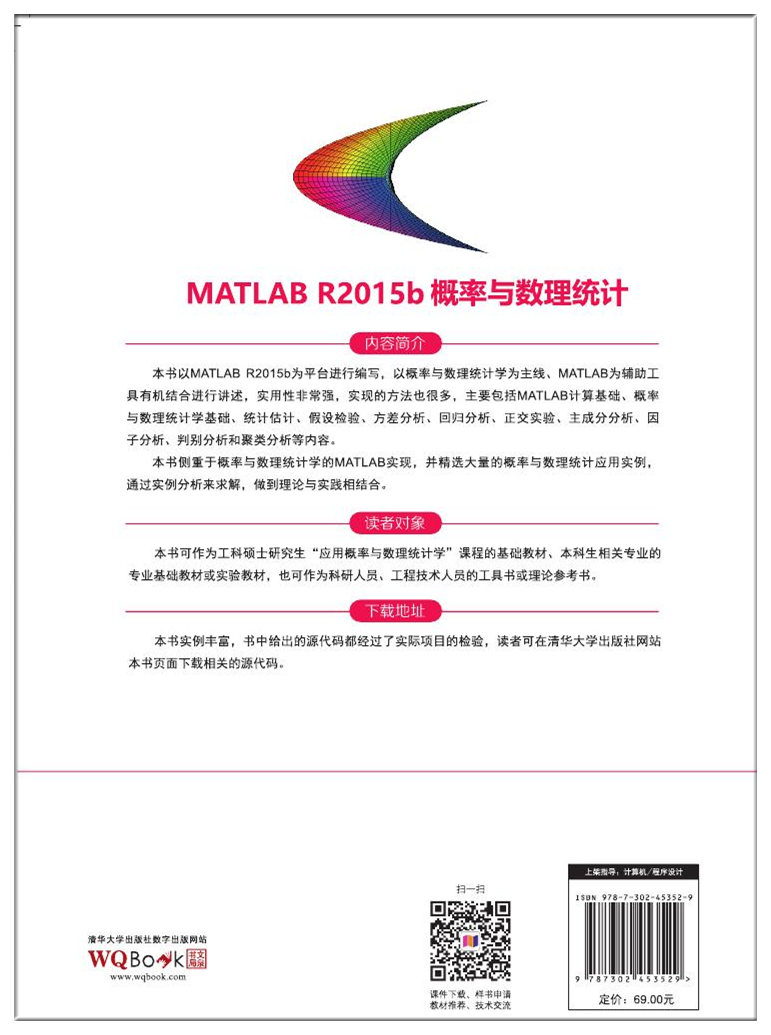 前言 MATLAB语言一直是国际科学界应用和影响最广泛的三大计算机数学语言之一。从某种意义上讲,在纯数学以外的领域中,MATLAB语言有着其他两种计算机数学语言——Mathematica和Maple无法比拟的优势和适用性。在很多领域,MATLAB语言是科学研究者首选的计算机数学语言。目前国内外关于MATLAB语言和应用书籍数以千计,但从其覆盖面和应用水平来说,往往难以满足日益增长的MATLAB语言使用者的要求。已出版的著作从涵盖面及深度与广度上缺乏高层次、全面系统介绍高等应用数学问题各个分支的计算机求解的书籍。 随着计算机的发展与普及,概率与数理统计已成为处理信息、进行决策的重要理论和方法。在科学研究中,用概率和数理统计方法从数据中获取信息和判别初步规律,往往成为重大科学发现的先导。概率与数理统计是数学方法与实际相结合,应用最为广泛、最为重要的方式之一。因此,现代科研人员和工程技术人员都应该掌握概率与数理统计的基础知识。同时概率与数理统计在自然科学、工程技术、管理科学及人文社会科学中得到越来越广泛和深入的应用,其研究的内容也随着科学技术和经济与社会的不断发展而逐步扩大。为了更好地满足高等学校培养高等技术应用型人才的需要,提高学生的基本素质和教学质量,解决高等学校“概率与数理统计”理论课与实践课相结合的问题,根据高等院校对数学教学的基本要求,应用数学与专业相融,基础数学为专业服务和以应用为目的,以必需、够用为度的基本原则,在多年从事高等教育教学实践的基础上,以MATLAB R2015b为平台编写了本书。 本书编写时力求做到以下几点。 (1) 数学软件命令的介绍...
