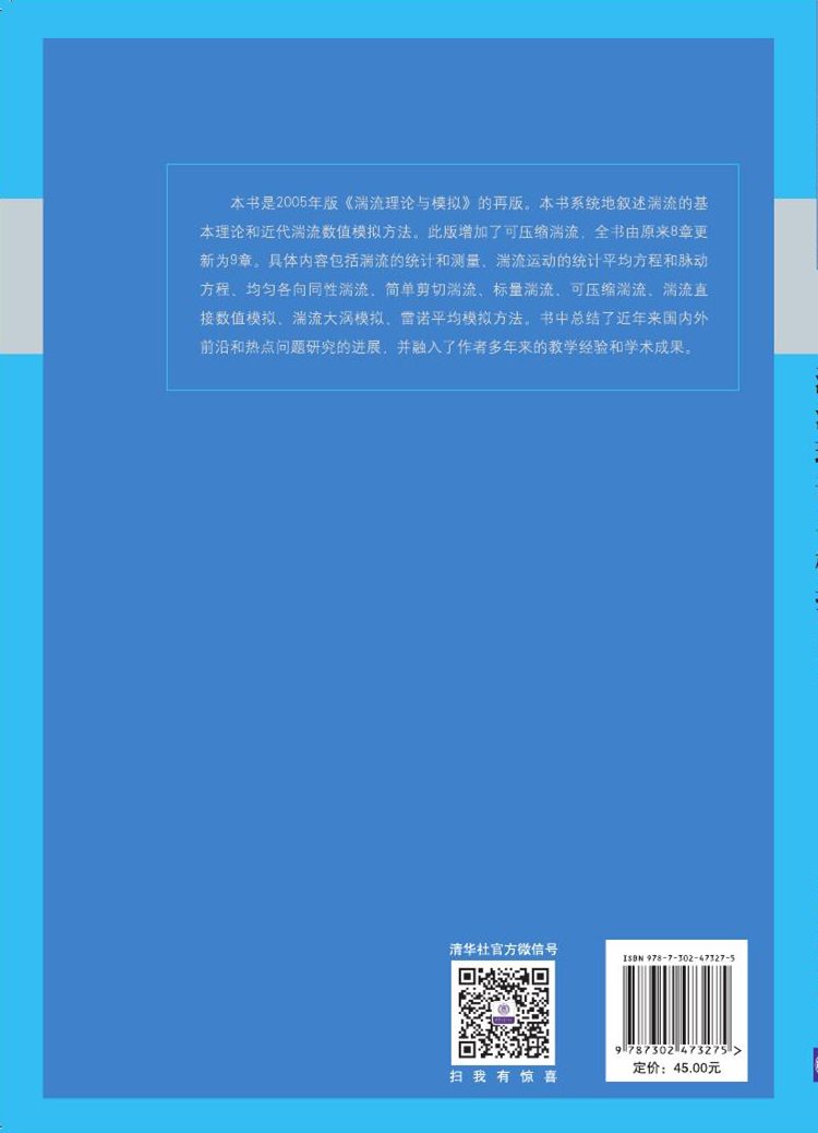 本书第1版早已售罄,广大科技工作者和研究生纷纷要求再版。湍流是正在不断发展的学科,再版应当适应它的发展。本书第1版绝大部分内容是不可压缩湍流的理论和数值模拟,对于初学湍流的读者,这是基础。但是随着科学技术的发展,需要更新内容以满足读者的需要。本书再版保留湍流理论的基础部分,例如,湍流的统计,不可压缩各向同性湍流和简单剪切湍流,数值模拟方法等。这些内容是学习和理解湍流的必备知识。同时增加了“可压缩湍流”一章,这是目前湍流界研究的热点之一; 在“标量湍流”和“湍流大涡模拟”两章中增加了大气环境的算例; 在“简单剪切湍流”中,增补了新的发现和有争议的问题,例如,壁湍流的超大尺度脉动,壁湍流平衡区是对数律还是幂律的争论,卡门常数是不是普适常数,等等; 在数值模拟方面,增加了一节“雷诺平均和大涡模拟的组合模型”。 本书虽然增加了内容,但仍然跟不上该学科的发展和工程技术的需要。在欧洲湍流的千禧年会议上,两位湍流专家声称湍流研究还处于幼年时代 Lumley J,Yaglom A.2001.A century of turbulence.Flow,Turbulence and Combustion,66(3): 241285. ,它的基本理论有待进一步建立,它的应用面在不断扩大。本书增加了一些内容,还属于基础内容,发展湍流理论和数值模拟方法,还有待后起之秀作出贡献。可喜的是本书再版有清华大学流体力学研究所优秀青年基金获得者黄伟希副教授加盟。 作者2017年4月于清华园