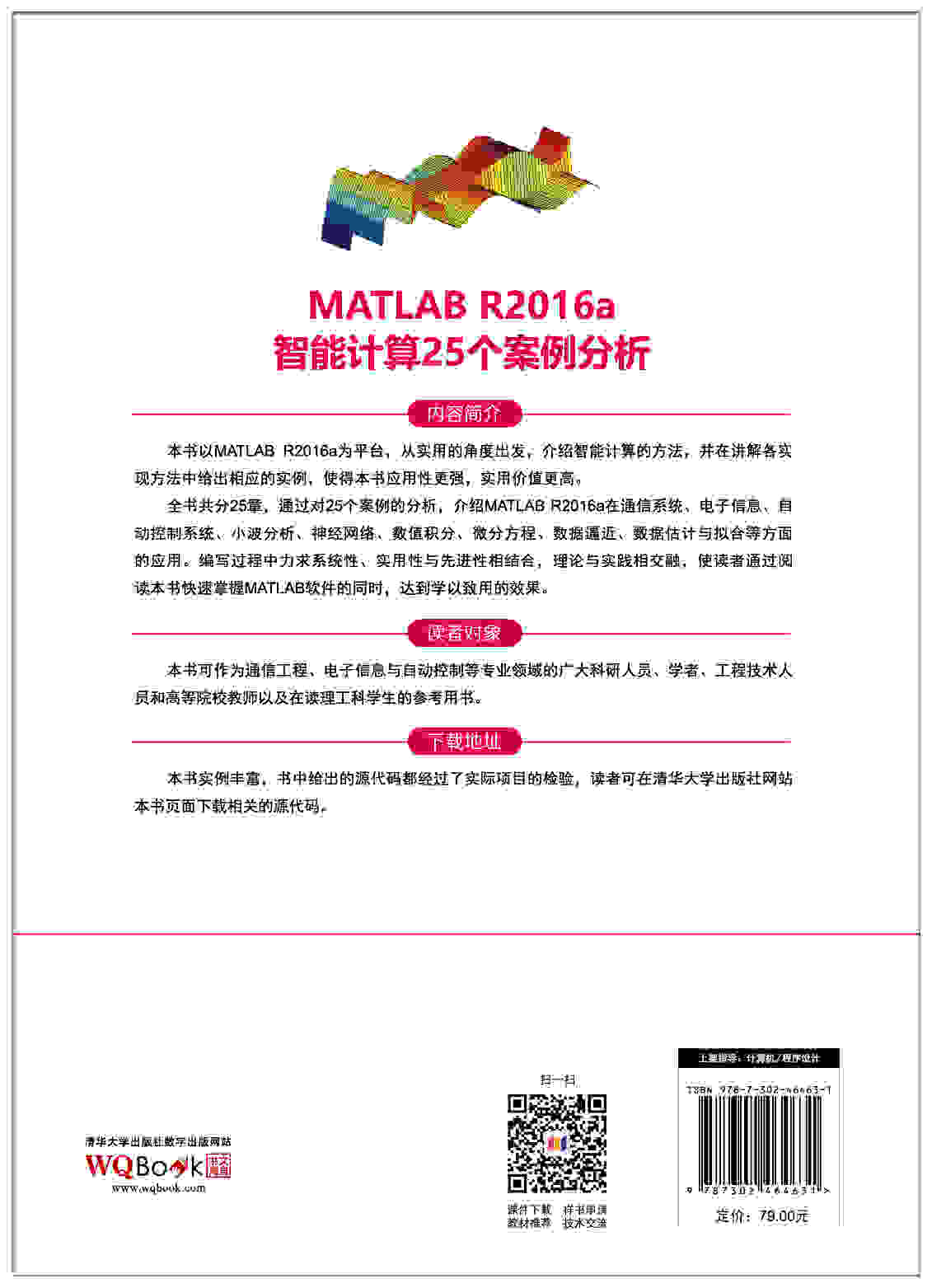 本书是“精通MATLAB”丛书之一,全书基于MATLAB R2016a平台,从需要、实用的角度出发,介绍了智能计算的方法,并在讲解各实现方法中给出相应的实例,使得本书应用性更强,实用价值更高。本书提供所有程序源代码。“精通MATLAB”相关书目如下: (1)MATLAB 8.X实战指南 (2)数字图像处理高级应用——基于MATLAB和CUDA的实现(第2版) (3)MATLAB通信系统建模与仿真 (4)MATLAB R2015a数字图像处理 (5)MATLAB R2015b数学建模 (6)MATLAB R2015a小波分析 (7)MATLAB R2015b神经网络技术 (8)MATLAB R2015b最优化计算 (9)MATLAB R2015b概率与数理统计 (10)MATLAB R2015b数值计算方法 (11)MATLAB R2016a智能计算25个案例分析
