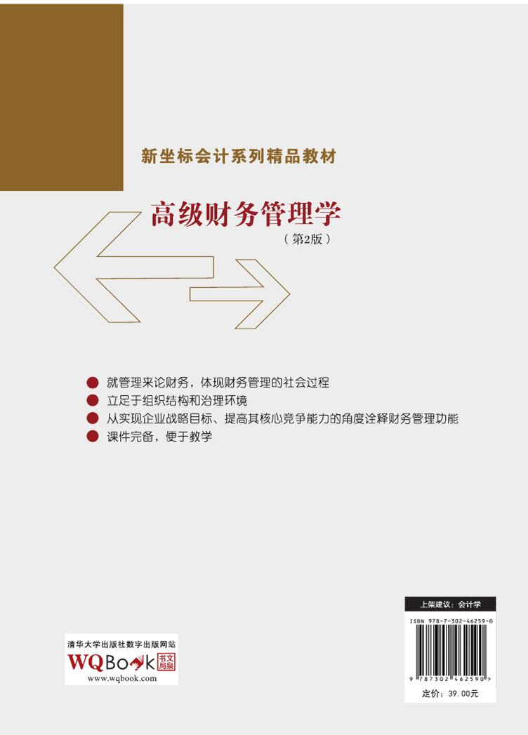 这次修改,本书的框架结构与主体内容没有重大变化。具体变化与完善包括:(1)写作文风上,服从教学需要,更便于教师在课堂上依循教科书,同时也提升了教师在教学中“自主发挥”的空间;(2)不少内容吸收了财务管理理论与实践的最新成果,尤其是作者近年来最新的研究成果,体现了财务理论发展和实际创新的最新成果;(3)删去了“预算管理”章节,因为全面预算等更应该属于是管理会计而非公司财务管理的内容。当然作为落实战略的工具,我们把预算嵌入财务战略管理的内容当中;(4)首次安排单独章节阐述“挂牌新三板的企业财务问题”,以此探究中小企业财务管理问题;(5)更新了各章节后的所有教学案例,它们都是中国企业的新近案例,以“接地气”探究新近的中国企业相关财务案例是最佳学习方式;(6)每章后面在归纳各章小结的基础上,提出了“本章思考题”,旨在进一步明确本章的关键知识点和同学们应该思考的重要问题。
