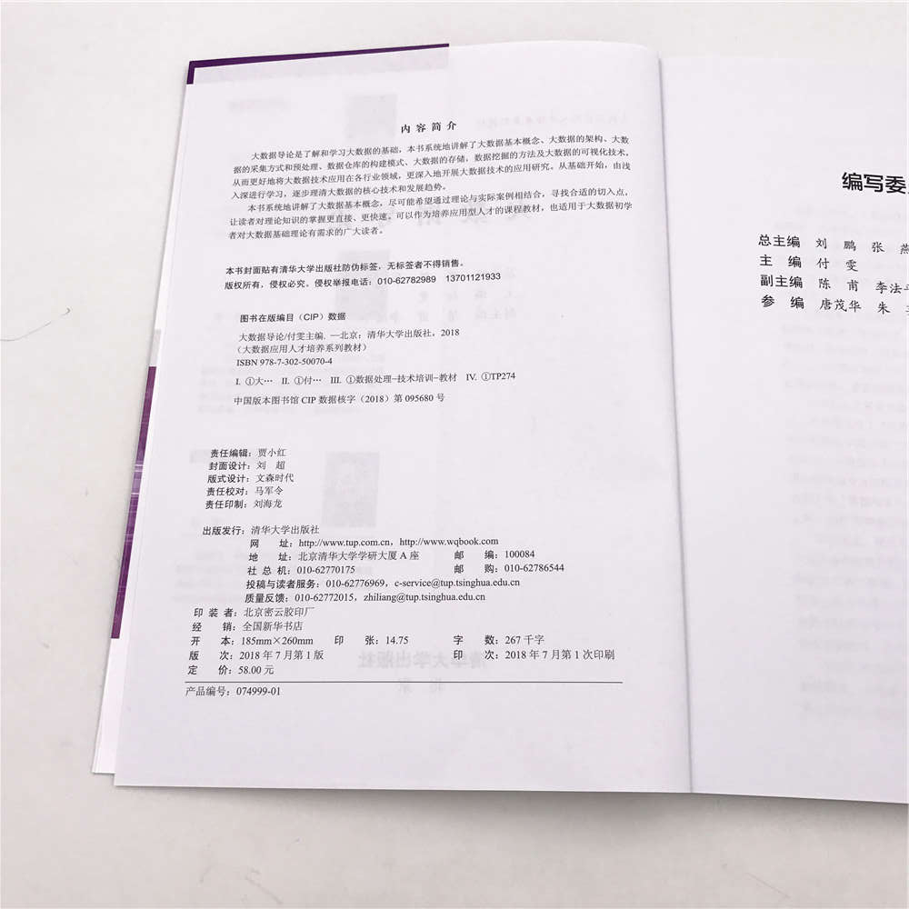 大数据导论是了解和学习大数据的基础,本书系统地讲解了大数据基本概念、大数据的架构、大数 据的采集方式和预处理、数据仓库的构建模式、大数据的存储,数据挖掘的方法及大数据的可视化技术, 从而更好地将大数据技术应用在各行业领域,更深入地开展大数据技术的应用研究。从基础开始,由浅 入深进行学习,逐步理清大数据的核心技术和发展趋势。 本书系统地讲解了大数据基本概念,尽可能希望通过理论与实际案例相结合,寻找合适的切入点, 让读者对理论知识的掌握更直接、更快速。可以作为培养应用型人才的课程教材,也适用于大数据初学 者对大数据基础理论有需求的广大读者。