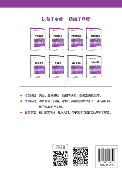 本书作者为大数据专业一线教师。本书首先详细介绍了大数据相关概念,接着介绍了大数据相关技术及其应用,最后介绍了大数据在各个行业的应用。在了解大数据的相关概念后,对大数据行业需要用到哪些技术有详细的了解,每种技术都给出了相应的运用工具,读者可以使用相应的工具来验证对应的技术;最后介绍的行业运用让读者对大数据在各个各业中起到的作用有深入的了解。本书侧重理论和实践的结合。