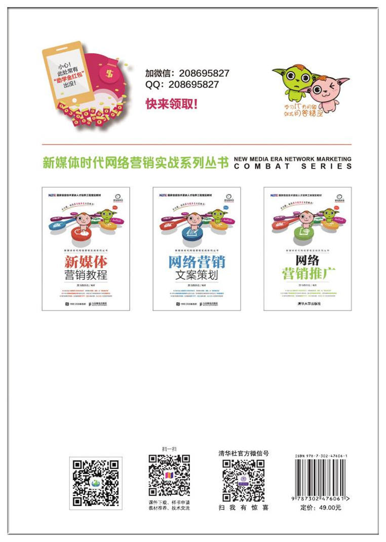 具有良好的实操性和应用性。将当前网络市场较为实用的相关知识直观地讲解给读者,并配合相应的案例进行演示讲解,操作性强。