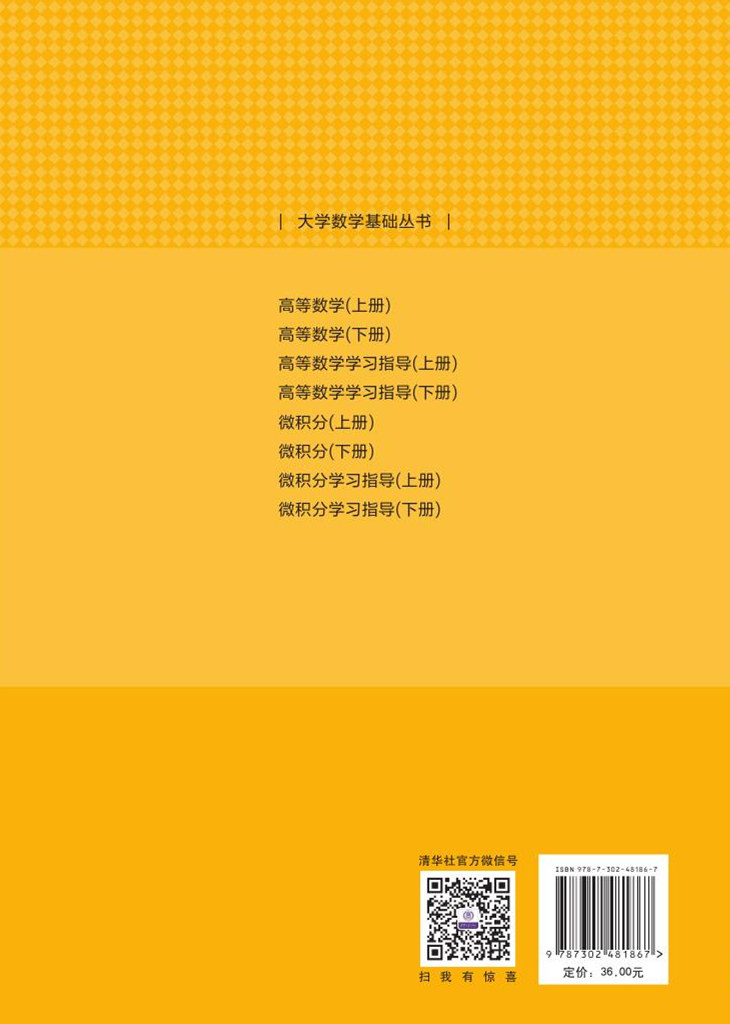 本书的特色主要体现在以下4个方面:1. 保持经典教材的优点,突出微积分的基本思想,将多年来的教学经验、教学成果融入教材中。 2. 优化内容结构,降低理论深度。面对高等教育大众化的现实,结合教学实际和学生的思维特点,适当降低了部分内容的深度和广度的要求,特别是淡化了各种运算技巧及理论证明,但提高了数学思想和数学应用方面的要求。3. 在注重基本知识的掌握和基本能力的培养的同时,兼顾学生综合运用知识能力的培养。在例题和习题的选编方面下了较大功夫,每节后既有基础训练题,又有相当于考研和竞赛难度的综合性提高题,围绕本节知识内容进行学习和训练。提高题和每章后的复习题,供学有余力的学生和考研的同学进一步提高数学水平选用。同时还尽量配以专业方面的应用题,旨在启迪思维,提高学生应用所学知识解决实际问题的能力。4. 内容编写由浅入深,思路清晰。尽可能采用通俗易懂的语言和形象直观的思维方式来表述,使基本概念和原理讲解通俗透彻,数学的基本技能和技巧叙述准确清晰,便于学生理解掌握。