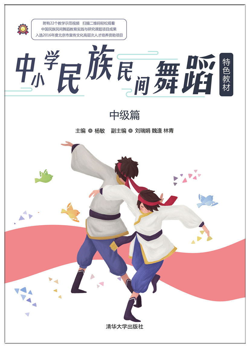 中小学民族民间舞蹈特色教材·中级篇附有22个教学示范视频扫描二维码轻松观看,中国民族民间舞蹈教育实践与研究课题项目成果,入选2016年度北京市宣传文化高层次人才培养资助项目
