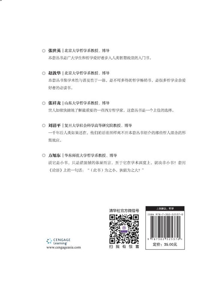 本套丛书每本都用短短的一百来页概述一个哲学家的整个哲学体系,没有让你阅读原著的迷惑,脉络清晰,通俗易懂。