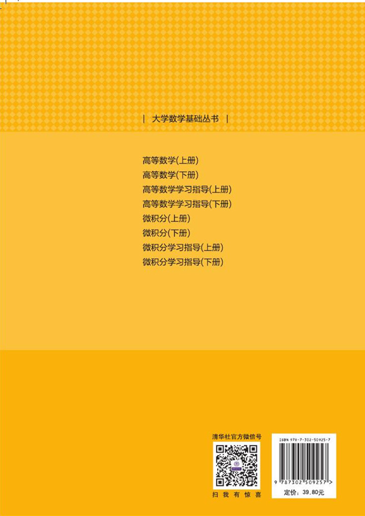 本书是与高等学校理工科各专业高等数学课程同步的学习指导书,全书分为上、下两册。上册内容包括函数、数列及其极限、函数的极限与连续、导数与微分、微分中值定理及其应用、不定积分、定积分及其应用、常微分方程;下册内容包括向量代数与空间解析几何、多元函数微分学及其应用、重积分、曲线积分与曲面积分、无穷级数。每节包括知识要点、疑难解析、经典题型详解和课后习题选解四个模块。每章的开始列出了本章的基本要求和知识网络图,最后部分是复习题解答和自测题。编写本书的主要目的是为了帮助学生更好地理解“高等数学”课程的内容,掌握课程的基本理论、解题方法及技巧。 本书可以作为高等学校理科、工科和技术学科等非数学专业的高等数学课程的学习指导书,也可作为青年教师的教学参考书和考研学生的复习用书。