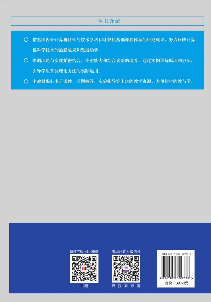 随着信息社会的到来,我国的高等学校计算机教育迎来了大发展时期。在计算机教育不断普及和高等教育逐步走向大众化的同时,高校在校生的人数也随之增加,就业压力随之加大。灵活应用所学的计算机知识解决各自领域的实际问题已经成为当代大学生必须具备的能力。为此,许多高等学校面向不同专业的大学生开设了相关的计算机课程。 时代的进步与社会的发展对高等学校计算机教育的质量提出了更高、更新的要求。抓好计算机专业课程以及计算机公共基础课程的教学,是提高计算机教育质量的关键。现在,很多高等学校除计算机系(学院)外,其他系(学院)也纷纷开设了计算机相关课程,在校大学生也必须学习计算机基础课程。为了适应社会的需求,满足计算机教育的发展需要,培养基础宽厚、能力卓越的计算机专业人才和掌握计算机基础知识、基本技能的相关专业的复合型人才迫在眉睫。为此,在进行了大量调查研究的基础上,通过借鉴国内外最新的计算机科学与技术学科和计算机基础课程体系的研究成果,规划了这套适合人才培养需要的、适用于高等学校学生学习的教材。 “教育以人为本”,计算机教育也是如此,“以人为本”的指导思想则是将“人”视为教学的主体,强调的是“教育”和“引导”,而不是“灌输”。本着这一初衷,本套教材注重体系的完整性、内容的科学性和编写理念的先进性,努力反映计算机科学技术的新技术、新成果、新应用、新趋势;针对不同学生的特点,因材施教,循序渐进,突出重点,分散难点;在写作方法上注重叙述的逻辑性、系统性、适用性、可读性,力求通俗易懂、深入浅出、易于理解、便于学习。 本套教材突出计算机科学与技术学科的特点,强调理论与实践紧密结合,注重能力和综合素质的培养...