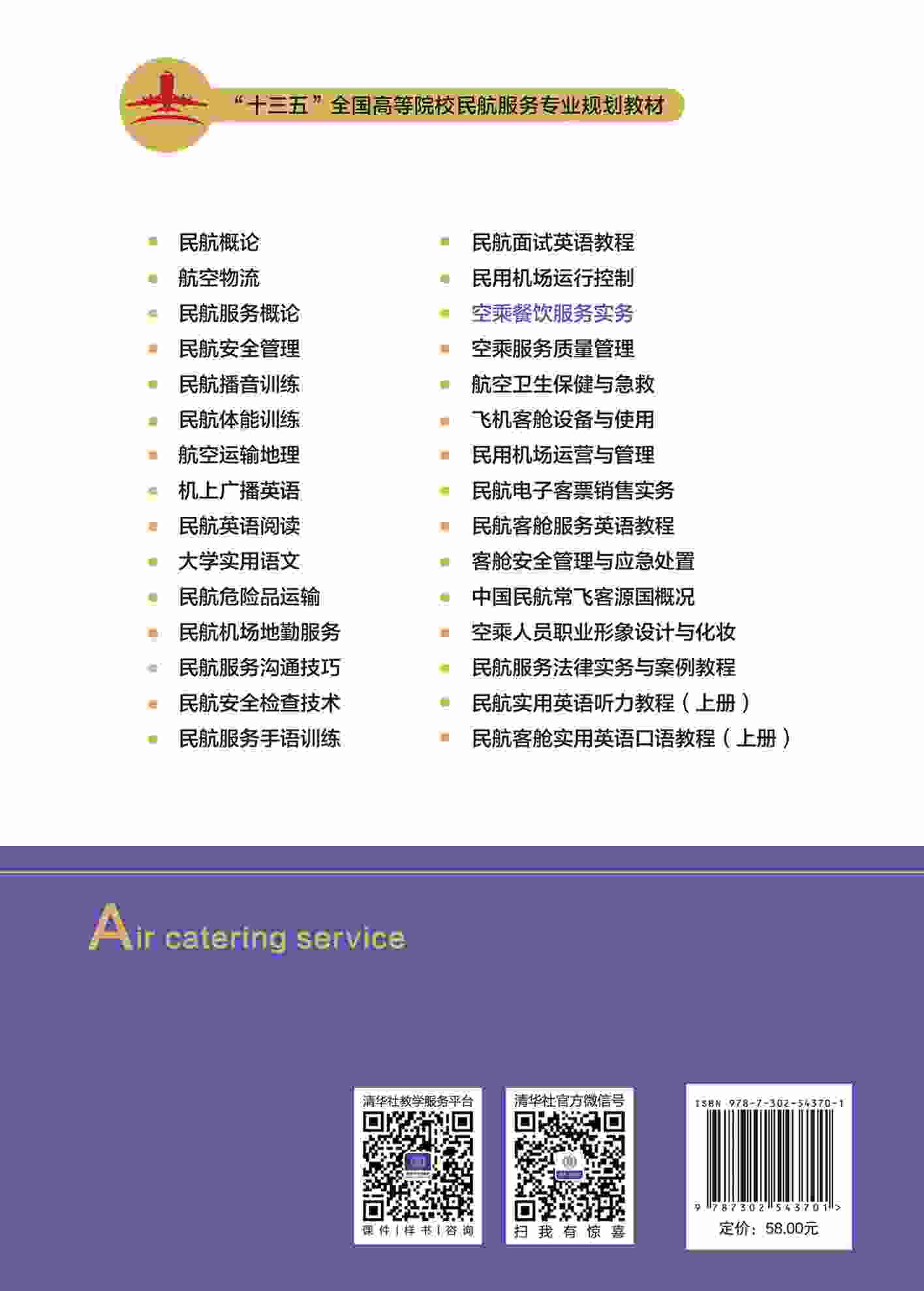 空乘餐饮服务实务材根据空中乘务员关于餐饮服务的素质要求进行论述,注重机上餐饮服务的理论知识和服务技能有机结合,注重知识性与实用性有机结合。